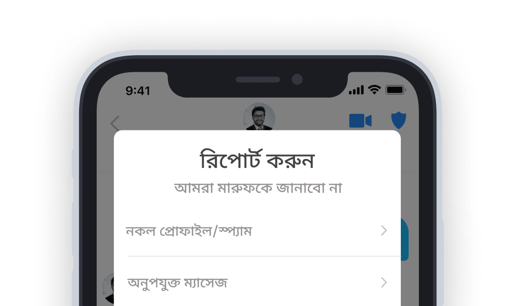 অ্যাপের মাধ্যমে কারো সম্পর্কে রিপোর্ট করার বিভিন্ন উপায় রয়েছে।